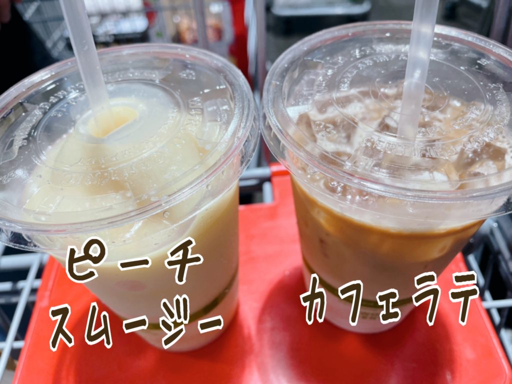 お買い物の後の楽しみは、スムージーとカフェラテです\( 'ω')/