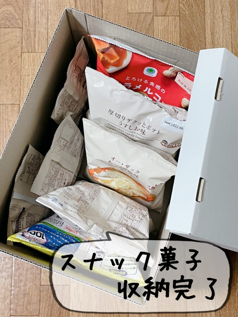これでポテチが粉々になるってこともないし、1カ所にまとめて置けば賞味期限の管理もバッチリ✨