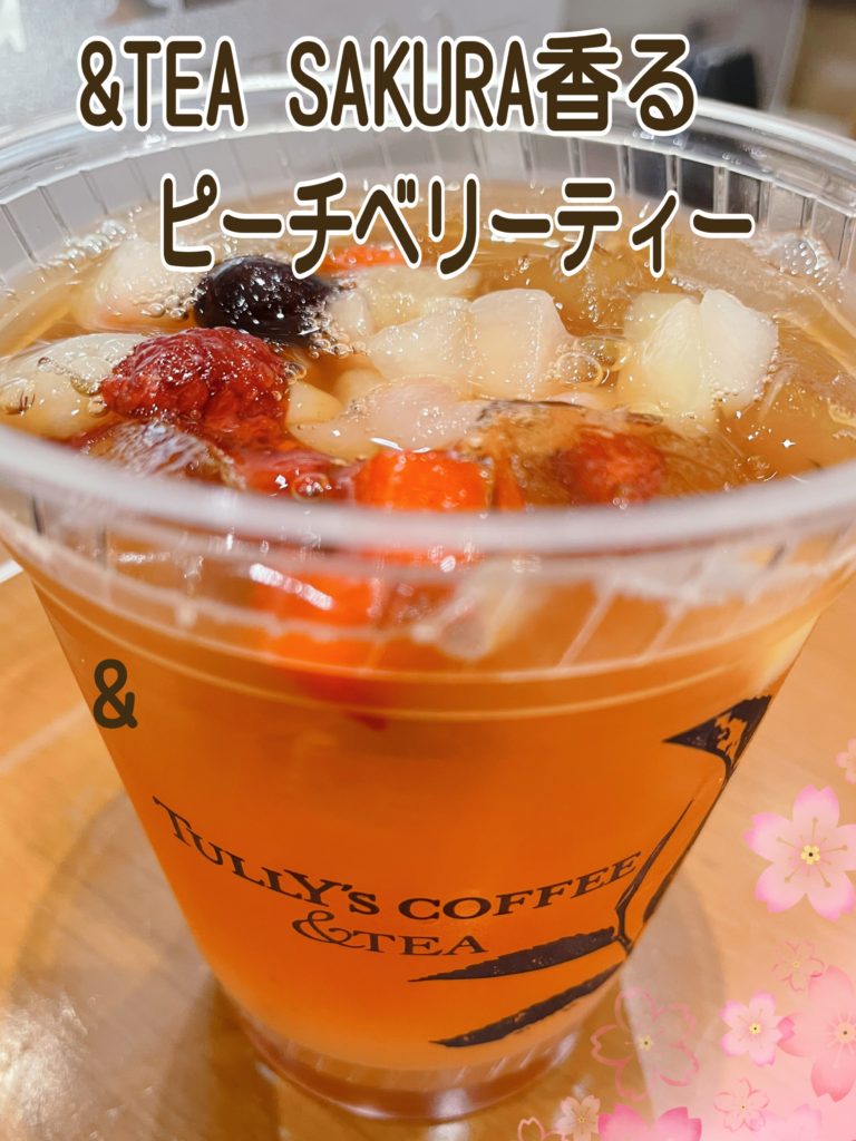 &TEA SAKURA香るピーチベリーティー 640円(ホットかアイスが選べます)