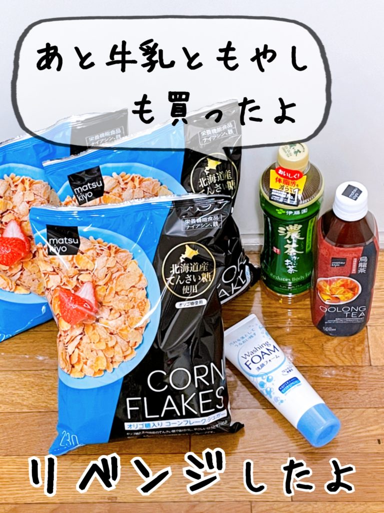 マツキヨさんでは、いつも買っているコーンフレークをメインにちょい足しでお買い物してきました!!