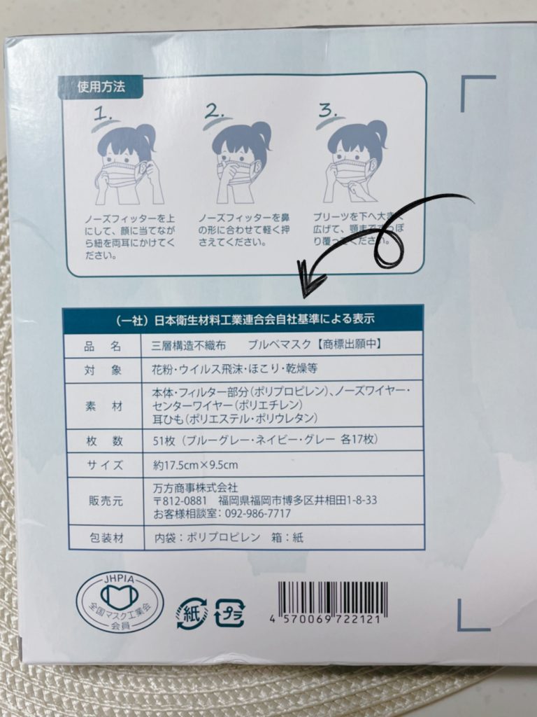 しかも、全国マスク工業会の会員のマークも付いているので安心して使えますね。