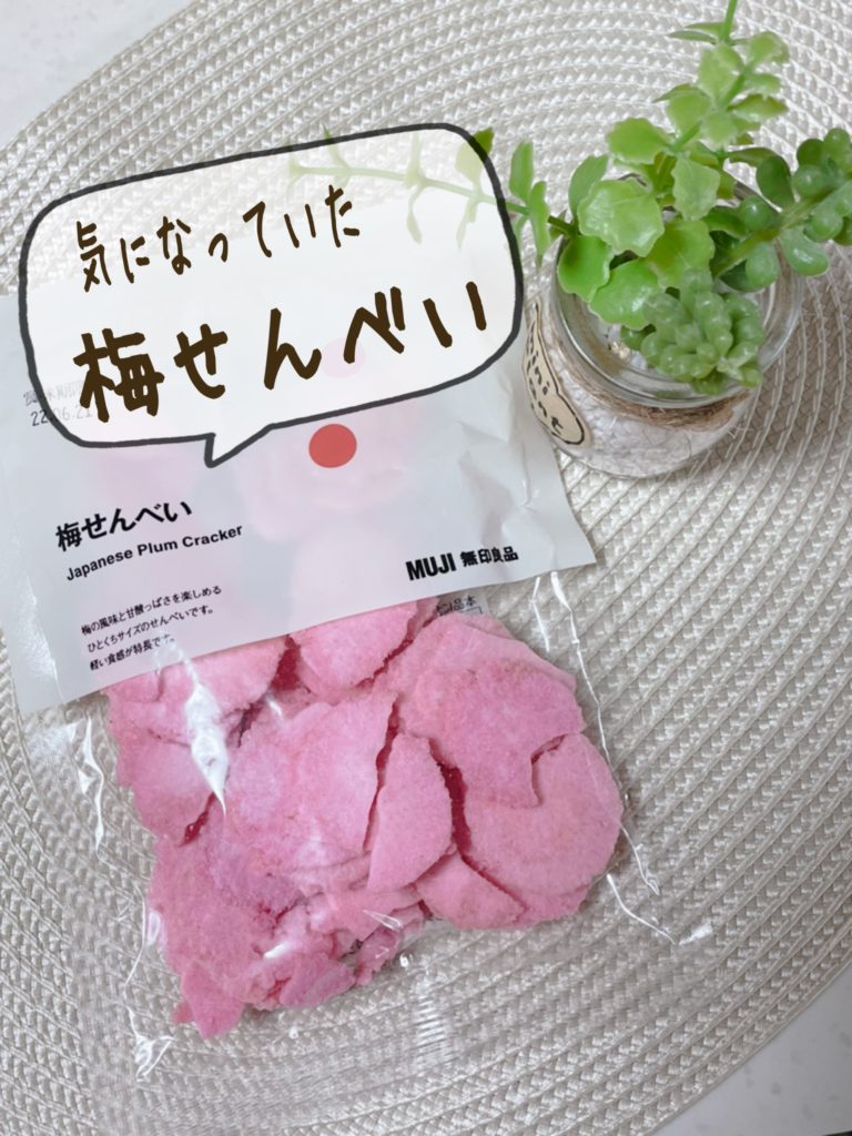 ピンクが鮮やかで、売り場に並んでいても目を引くお菓子、梅せんべい 99円です。
