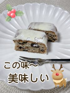 我が家の毎年の恒例となっているシュトーレンを、今日のおやつに食べました。